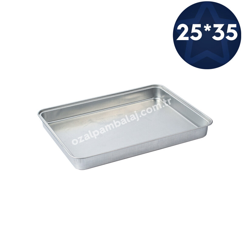25 cm eninde , 35 cm boyunda , 3,5 cm yüksekliğinde 400 micron kalınlığında tek (veya isteğe göre çok) kullanımlık kalın alüminyum tepsidir.
