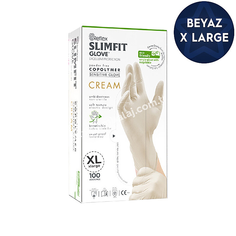 Reflex Slimfit Hibrit Pudrasız Krem Eldiven (X Large /Ekstra Büyük), Copolymer TPE yapısı sayesinde günlük kullanımdan profesyonel işlere kadar güvenle tercih edilir. Eli ve parmakları mükemmel kavrar; yumuşak dokusu ve cilt dostu yapısıyla uzun süreli konforda fark yaratır.