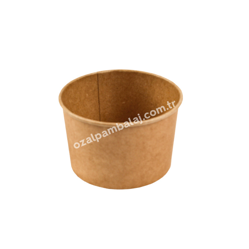 Baskısız Kraft Karton olan kasemiz çorbaların yanısıra tüm sıcak ve soğuk yemekler,sulu yemekler,pilav,salata ve helva,aşure gibi tatlıların servisinde de kullanılan ,kullan at karton gıda , karton yemek ve tatlı kasesidir.