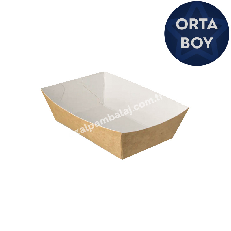 Gelince Haber VerTaban Ölçüleri 8x12xH:5 cm , Ağız (Üst) Ölçüleri 12x17 H:5 cm ebatlarında , tek kullanımlık , kraft karton kayık tabak veya diğer adıyla kraft karton tavadır. (Selefonsuz)