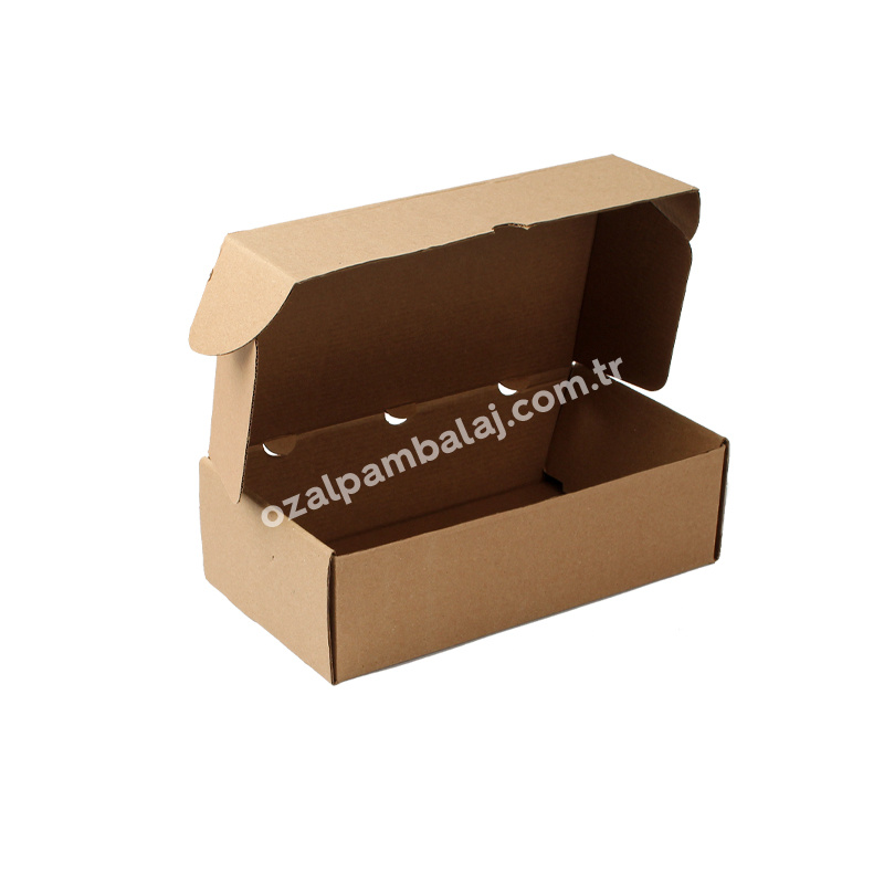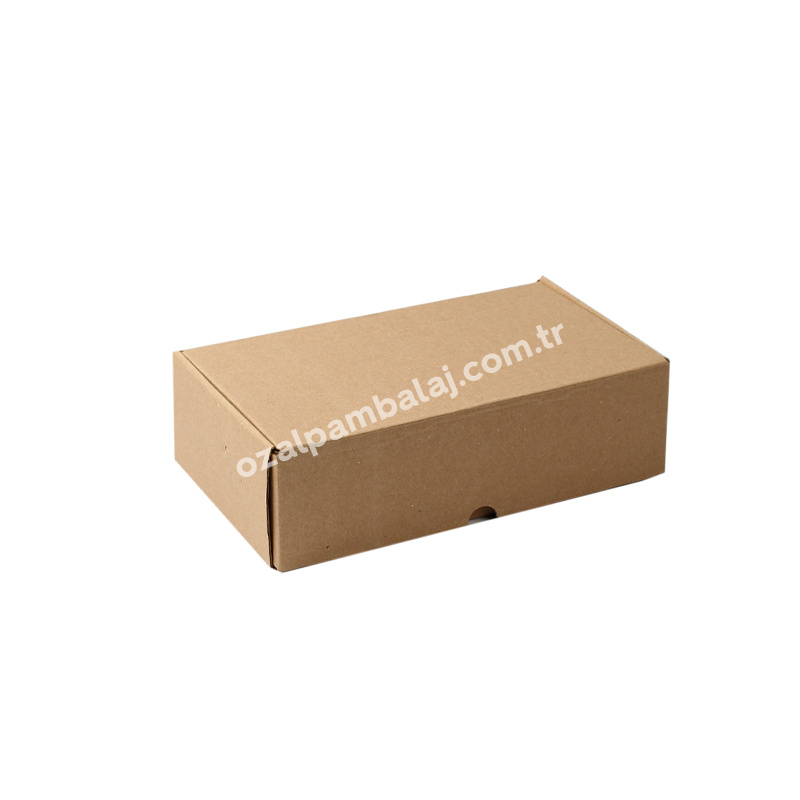 14 cm eninde 26 cm uzunluğunda ve 7,5 cm yüksekliğinde içi ve dışı oluklu kraft kartondan imal edilmiş menü veya fast food paket servis kutusudur.