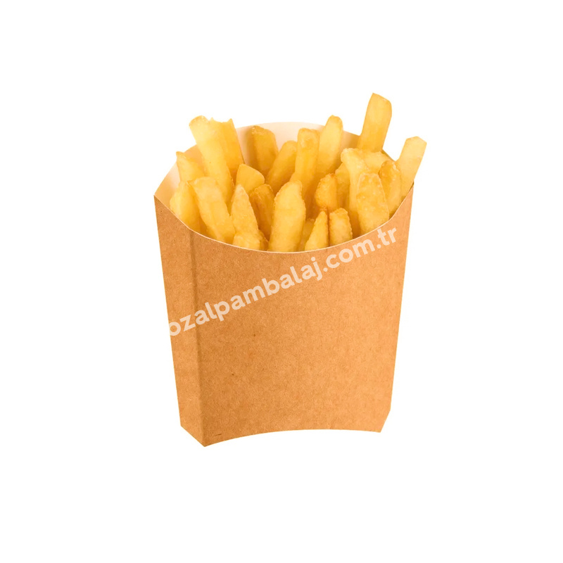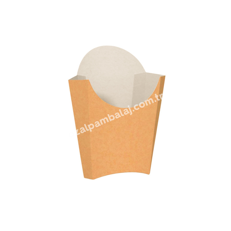 Kapalı Hali 12 cm * 12 cm + 5 cm (Körük) , Açık Hali 10 cm * 10 cm + 5 cm (Körük) boyutunda , Kraft kartondan imal edilmiş,tek kullanımlık Kraft patates cips kutusudur.