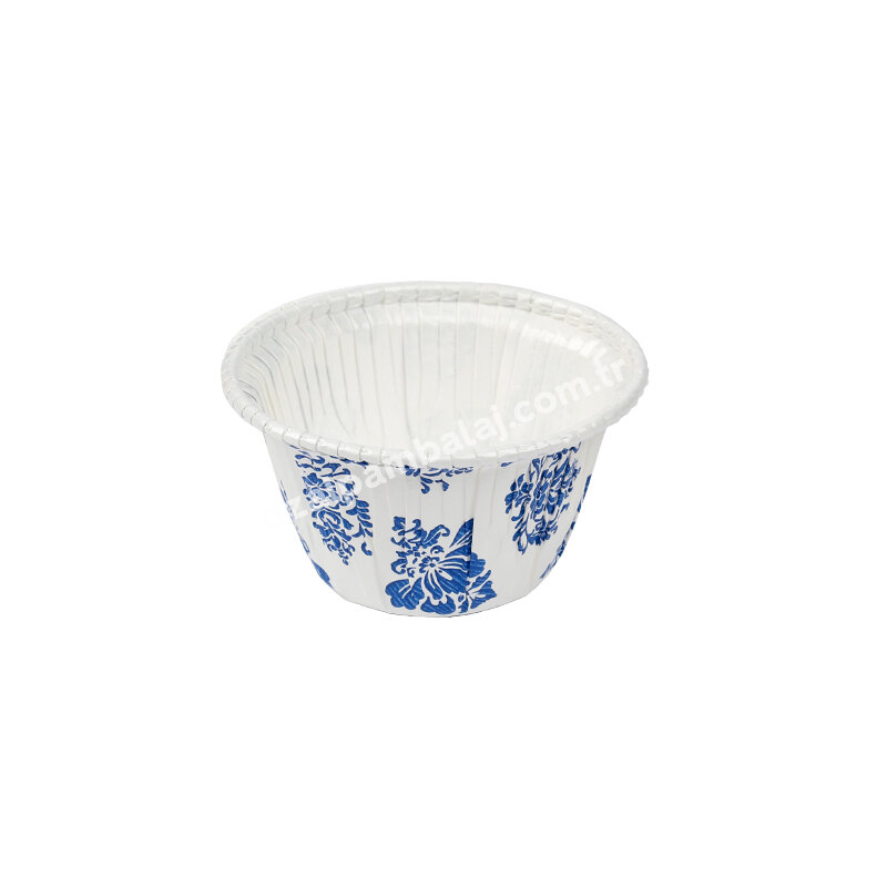 Bens Marka , 8 cm Ağız Çapı x 5 cm Yüksekliğinde (Taban Çap: 5 cm),iç kısmı Gıda temasına ve gıda güvenliğine uygun Kaplamalı , Dış Kısmı ise Mavi Renk Çini Desenli , Muffin,Cupcake,Sufle,Browni,Kek vb. ve ikramlık tüm gıda ürünlerinize uygun Sufle Muffin Mini Kek Kabı/Ambalajıdır.